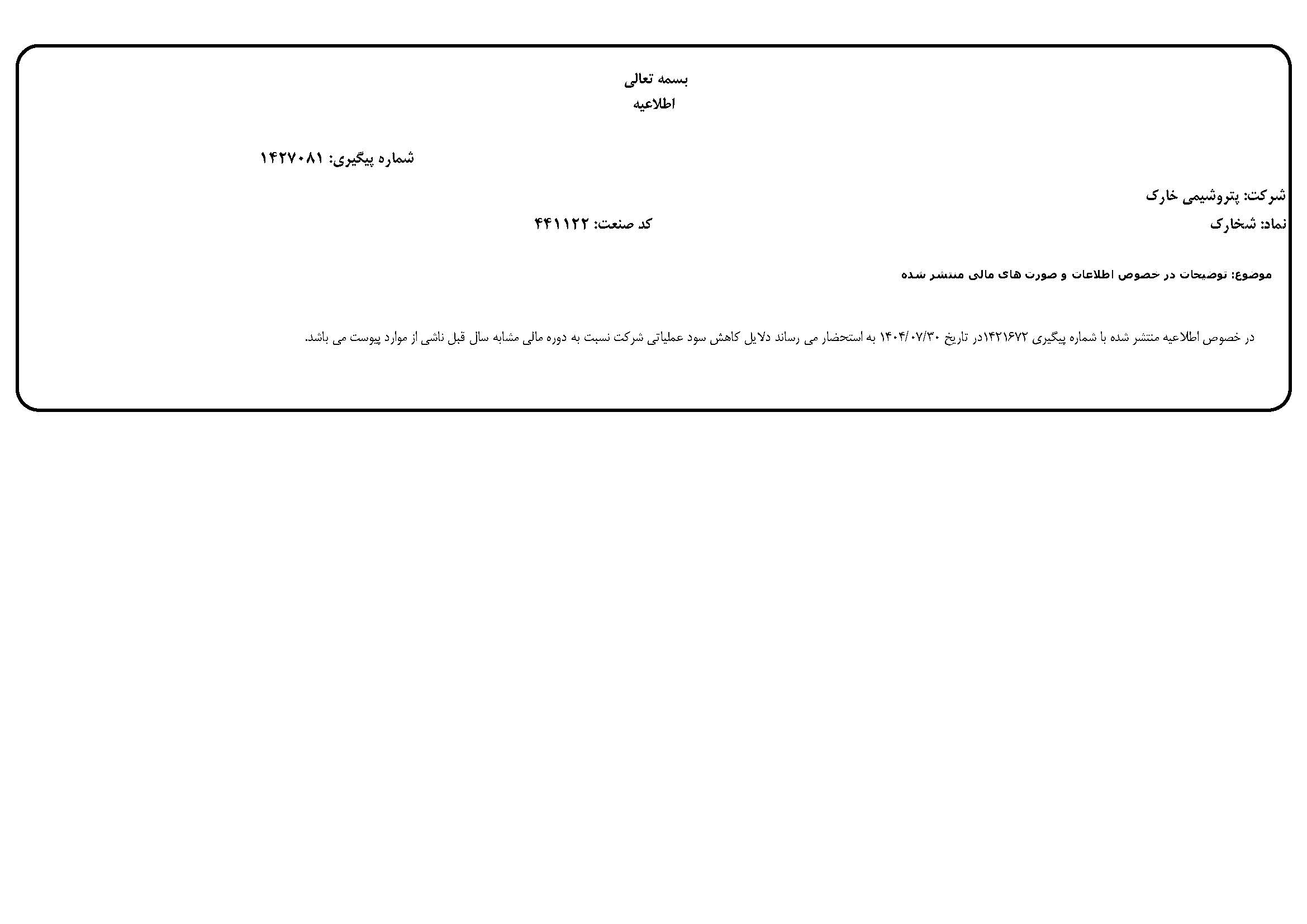 توضیحات در خصوص اطلاعات و صورت های مالی منتشر شده