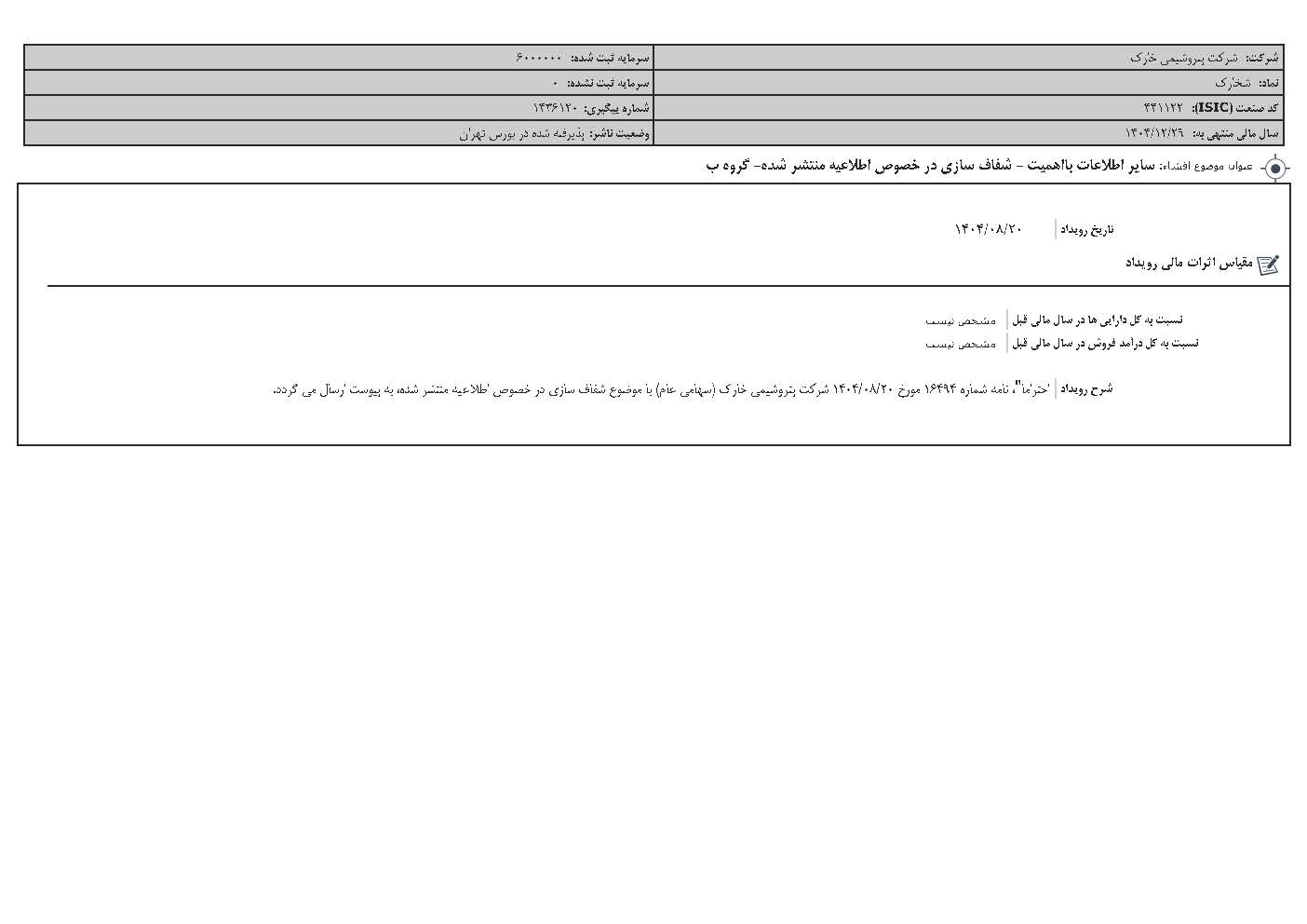 افشای اطلاعات بااهمیت - (سایر اطلاعات بااهمیت - شفاف سازی در خصوص اطلاعیه منتشر شده- گروه ب) منتهی به سال مالی ۱۴۰۴۱۲۲۹(اصلاحیه)