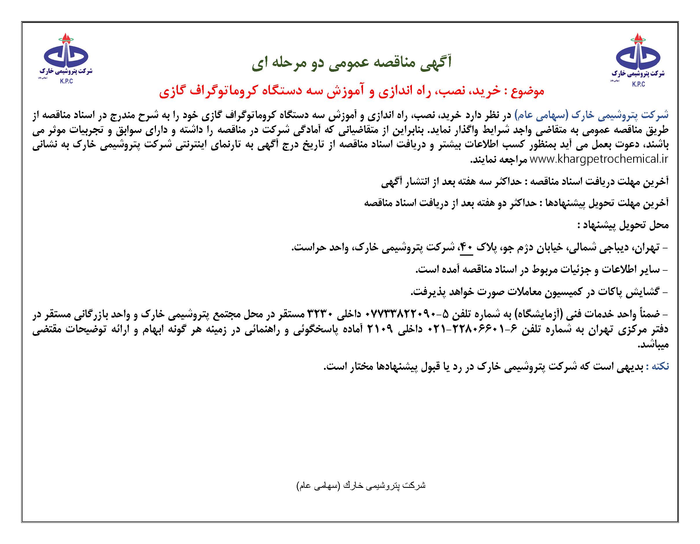 مناقصه عمومي و دو مرحله اي بدون سپرده خريد دستگاه كروماتوگراف