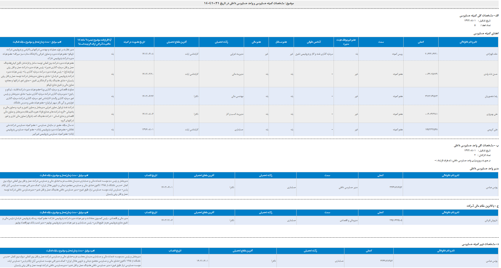 مشخصات کمیته حسابرسی و واحد حسابرسی داخلی